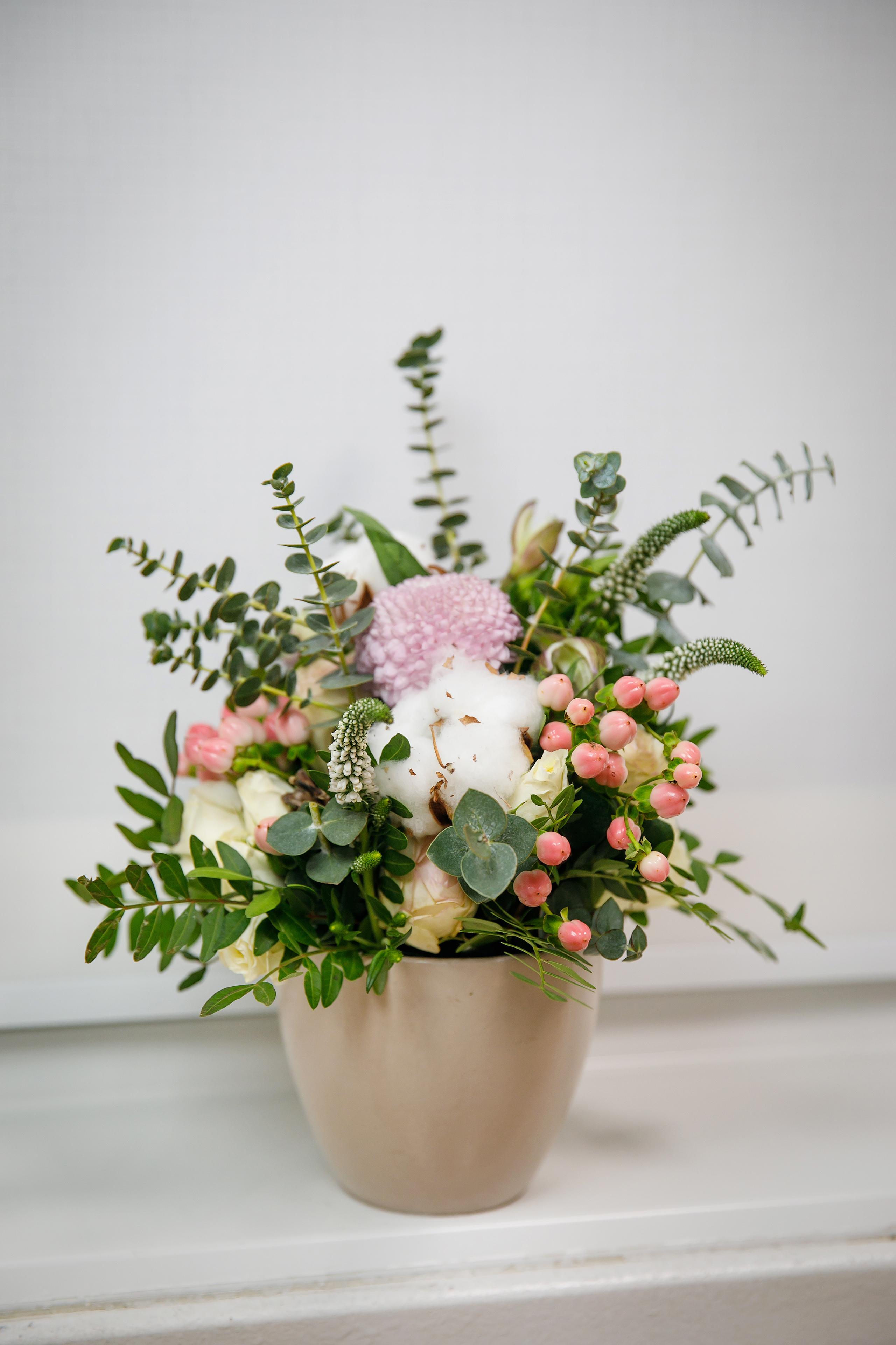 Когда композиция завянет - вытащи её вместе с губкой из ёмкости, в которой она находилась. Если это кашпо, то помой его с моющим средством и можешь использовать по назначению (посадить в него растение) или любым другим образом. Если это корзинка, деревянный ящик, шляпная или картонная коробка, что-то другое - мыть будет проблематично, поэтому почисти ёмкость салфеткой и используй на своё усмотрение. Цветочная композиция, даритель и повод будут вспоминаться при использовании этих предметов и продолжать радовать.